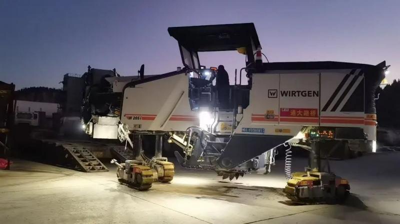 作業(yè)現(xiàn)場,機器轟鳴,多種類機械設備同時作業(yè),工程車輛在工地上穿梭,銑刨機24小時不間斷推進基層銑刨。施工人員、機械操作手、工程技術人員實行“兩班倒”運轉(zhuǎn),加班加點挑燈夜戰(zhàn),以保證基層銑刨任務能夠按時完成。