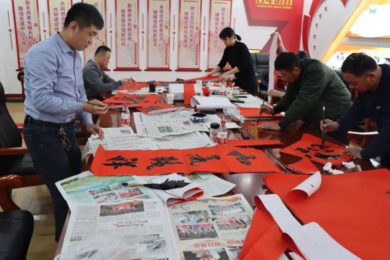 活動(dòng)現(xiàn)場(chǎng),來自集團(tuán)各崗位的書法愛好者們,或凝神靜氣,揮毫潑墨;或相互交流,切磋技藝,現(xiàn)場(chǎng)書寫飽含滿滿祝福的“!弊趾痛郝(lián),一幅幅鋪滿新春祝福、灑滿平安吉祥的書法作品躍然紙上,為大家送上美好的新春祝福。在場(chǎng)職工有的幫著傳遞筆墨,有的幫忙裁剪紙張,有的幫忙晾春聯(lián)的墨跡......現(xiàn)場(chǎng)呈現(xiàn)出一派喜氣祥和、暖意融融的景象。