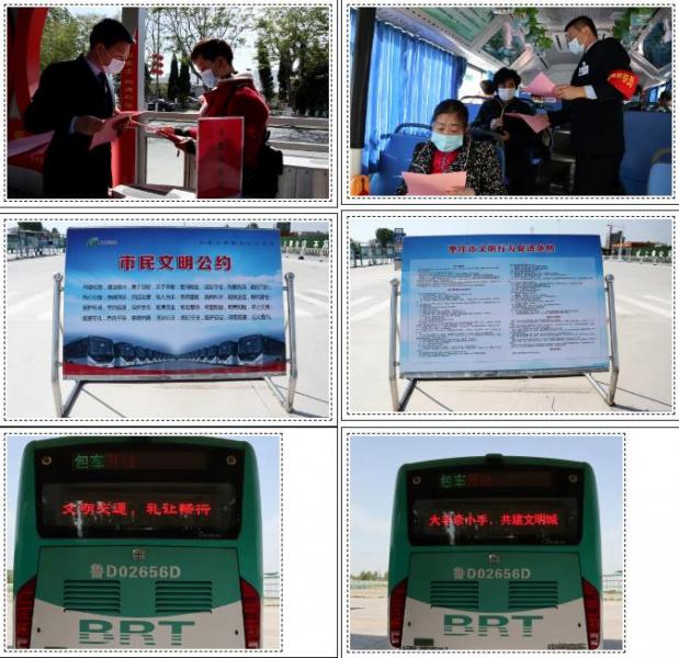 公司將BRT站臺(tái)廣告更換為社會(huì)主義核心價(jià)觀、講文明樹新風(fēng)、文明出行、創(chuàng)建全國文明城市等公益廣告;利用運(yùn)營車輛LED屏和BRT站臺(tái)電子站牌滾動(dòng)播放創(chuàng)建全國文明城市宣傳標(biāo)語;同時(shí)將車廂內(nèi)吊環(huán)拉手、燈箱更換為創(chuàng)建文明城市和疫情防控宣傳標(biāo)語;組織工作人員深入一線,向乘客發(fā)放《創(chuàng)建全國文明城市倡議書》,向市民講解創(chuàng)建文明城市的目的和意義,動(dòng)員廣大市民積極投身到創(chuàng)建中來。通過營造宣傳輿論氛圍提高市民創(chuàng)城意識(shí)、為創(chuàng)建文明城市的工作開展,提供有力保障。