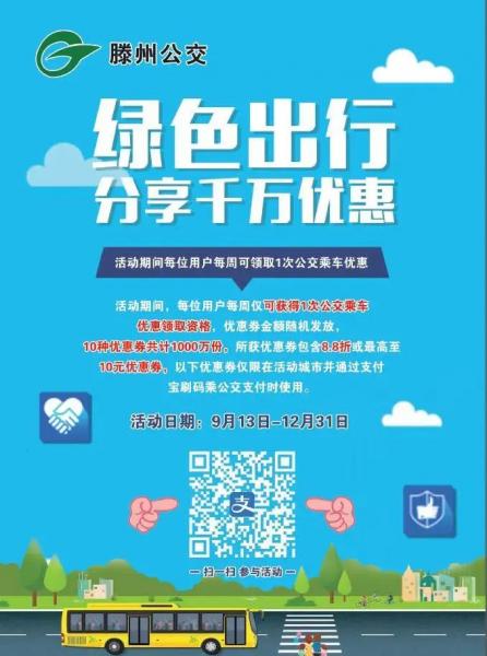 即日起至2022年12月31日,每位用戶每周僅可獲得1次公交乘車優(yōu)惠領(lǐng)取資格,優(yōu)惠券金額隨機(jī)發(fā)放,以下優(yōu)惠券各100萬份,所獲優(yōu)惠券包含8.8折或最高至10元優(yōu)惠券,以下優(yōu)惠券僅限在活動城市并通過支付寶刷碼乘公交支付時使用。