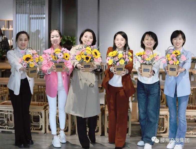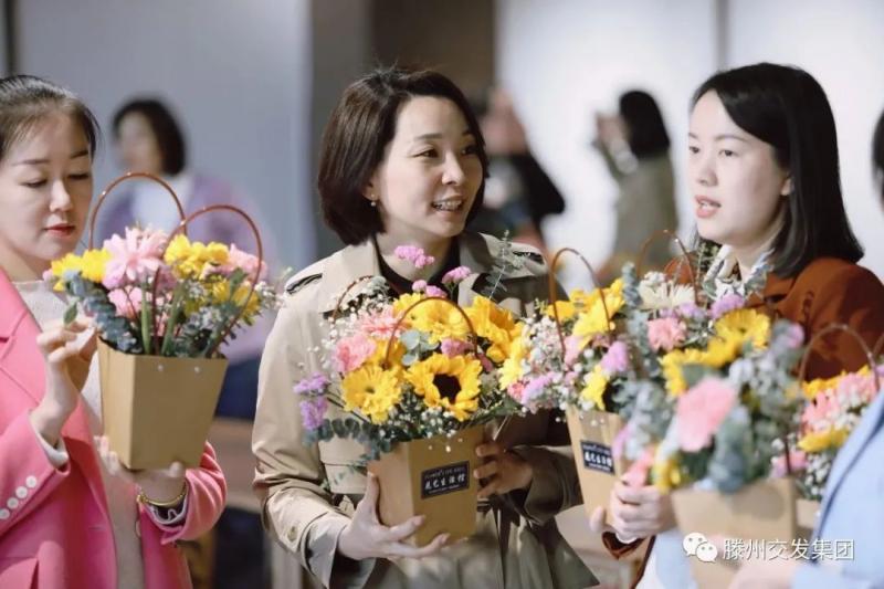 遲日江山麗,春風(fēng)花草香!睘檎故緩V大女職工奮發(fā)向上的精神風(fēng)貌,豐富女職工業(yè)余文化生活,3月7日,滕州市婦聯(lián)、市交通發(fā)展集團(tuán)在滕州市婦女兒童活動中心舉辦了慶祝“三八節(jié)”--“女性素質(zhì)提升”花藝技能培訓(xùn),旨在以花遇人,以花喻人,以花育人,讓參與活動的女職工們在花卉的芳香與妍美中感受美、欣賞美、創(chuàng)造美,以花傳情,傳遞快樂,陶冶情操,提升美感。市婦聯(lián)黨組成員、副主席、市婦女兒童事務(wù)服務(wù)中心主任王蕾,滕州市婦聯(lián)四級主任科員黃秀蓮,集團(tuán)黨委委員、副總經(jīng)理、工會主席李丹出席活動。