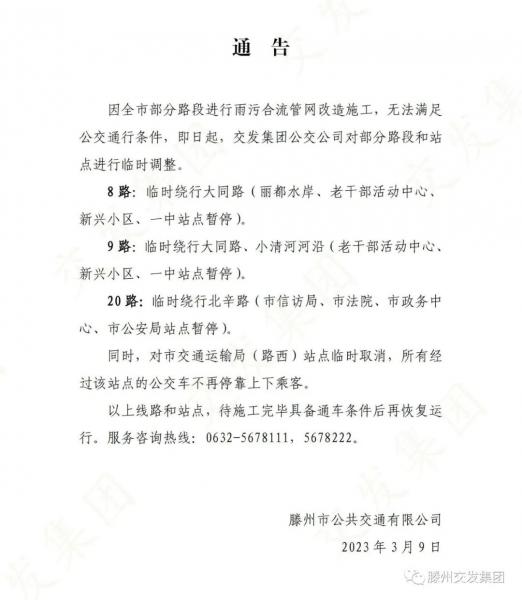 關(guān)于調(diào)整部分公交線路的通告