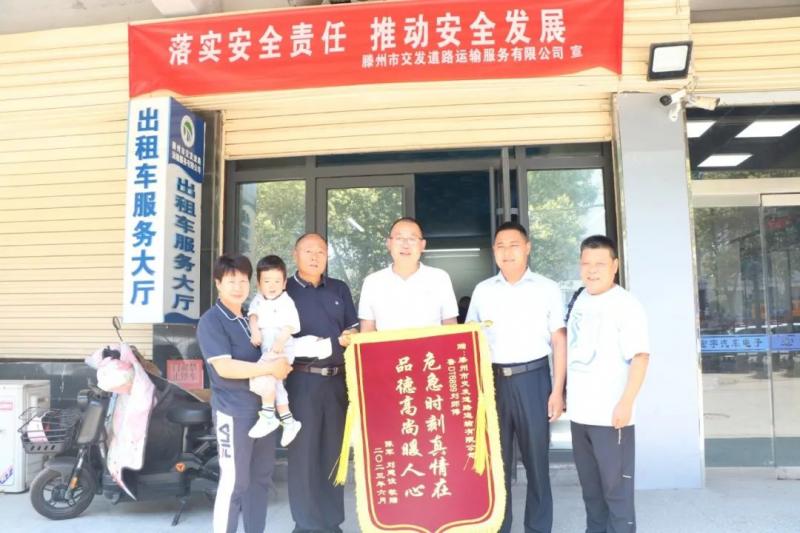 近日,市民劉先生來到交發(fā)集團(tuán)道服公司出租車大廳,將一面印有“危急時刻真情在,品德高尚暖人心”的錦旗交到公司工作人員和駕駛員的手中。