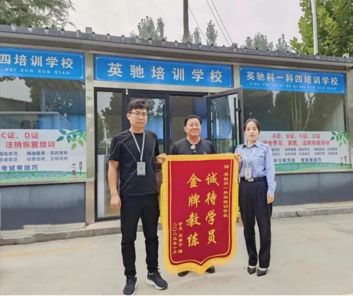 “感謝咱們英馳培訓(xùn)學(xué)校用心的指導(dǎo),我從報(bào)名到拿證僅僅用了2天的時(shí)間......”10月7日上午,D證學(xué)員劉先生來(lái)到交發(fā)集團(tuán)恒通公司,將一面寫(xiě)有“金牌教練 誠(chéng)待學(xué)員”的錦旗送到公司工作人員手中,對(duì)教練員的用心指導(dǎo)、貼心服務(wù)和專業(yè)教學(xué)給予高度評(píng)價(jià)并表示真誠(chéng)的感謝。