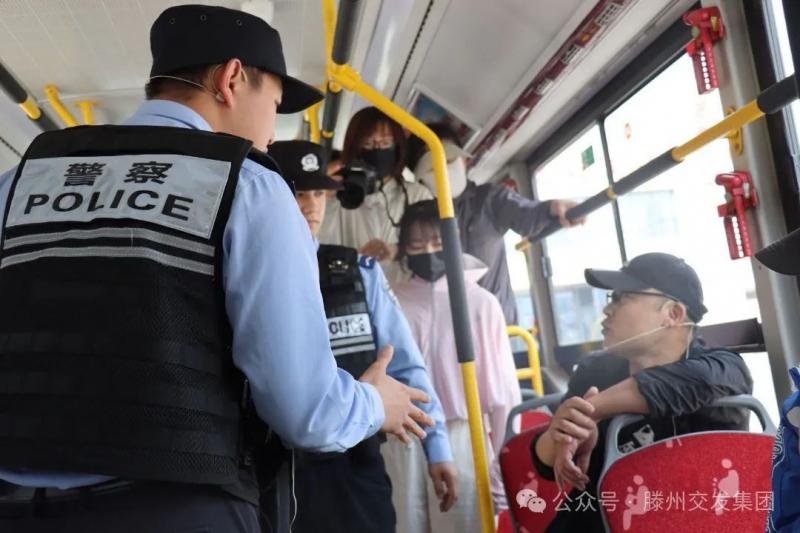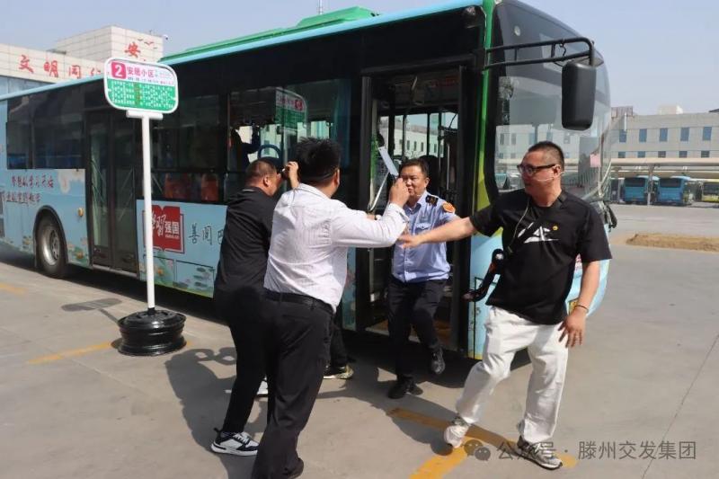 模擬公交駕駛員發(fā)現(xiàn)乘客帶有不明物品乘車,乘客不配合正常安全檢查,欲強行乘車,并與駕駛員發(fā)生爭執(zhí),駕駛?cè)藛T立即向公安和公司匯報情況。隨后110民警和公司管理人員趕到現(xiàn)場,對攜帶的違禁物品進行檢查,對拒不配合的乘客進行了強制帶離,解除了危險。安全管理人員對駕駛員進行安全叮囑后,公交車恢復運行。
