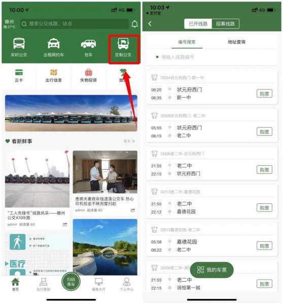點擊APP首頁“定制公交”,進入頁面后,可以查看已開通的“定制公交”線路編號、里程、票價、站點等詳細信息,選擇你的乘車站點,即可預(yù)約乘車。點擊后方的購票選項即可進入購票界面,支持日票、周票、月票購買。購買后用戶出示驗票碼即可乘車!岸ㄖ乒弧睒I(yè)務(wù)支持招募線路開通申請,有乘車需求的用戶,可點擊“發(fā)起線路”,填寫具體線路需求,報名人數(shù)到達指定人數(shù)后即可開通定制線路。